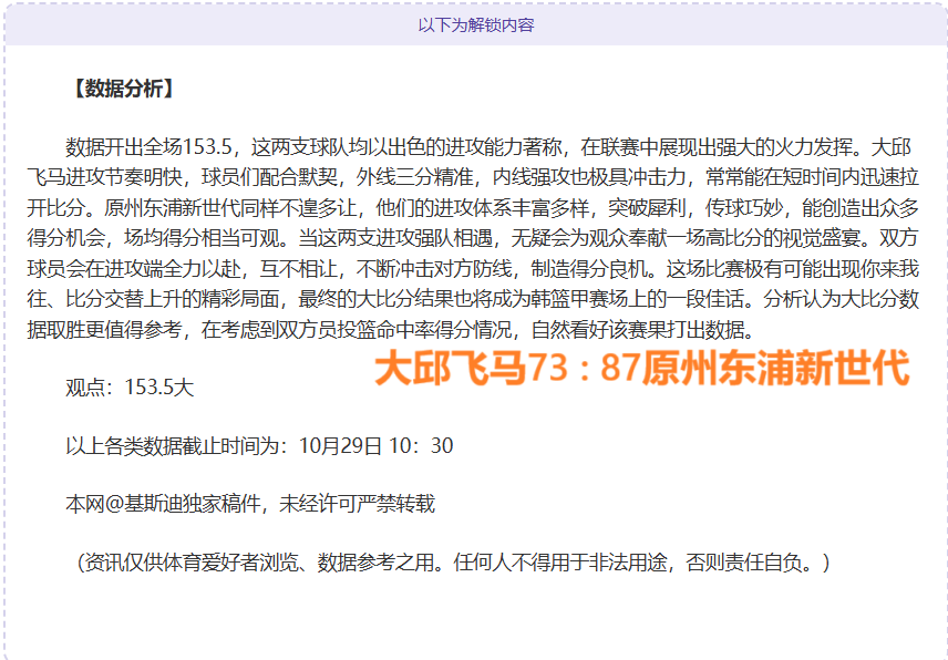 【成绩回顾】昨韩篮甲获得胜利,精选比赛拆解本期再创连胜新高度,篮球方向连胜呈现非同凡响,拆解精准比赛继续收获连胜,篮球板块拆解数据勇往直前,资深篮球爱好者,用独立方式拆解赛事再为大家奉上。以下再为大家分享一场精彩赛事,敬请期待!