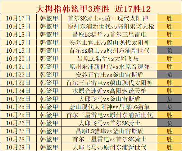 韩篮甲取得3连胜和17胜12精彩,一直的取胜的主力。13天累计胜+10,整体发挥值得认可!