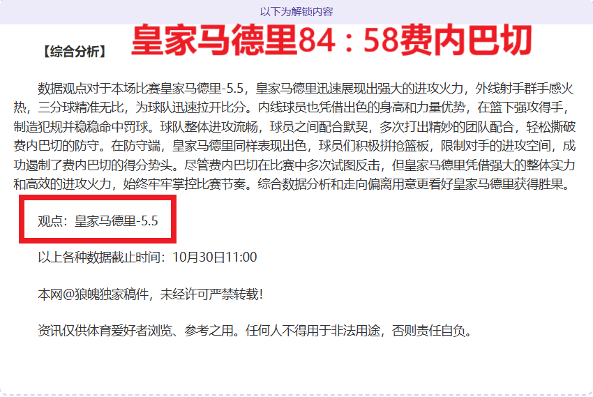 解锁内容包括:综合大数据分析+分解赛事走向+比赛建议+作者观点数据