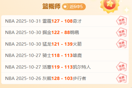 一、战绩回顾:NBA常规赛成绩是6中5,今天继续NBA,有需要的朋友请查收。