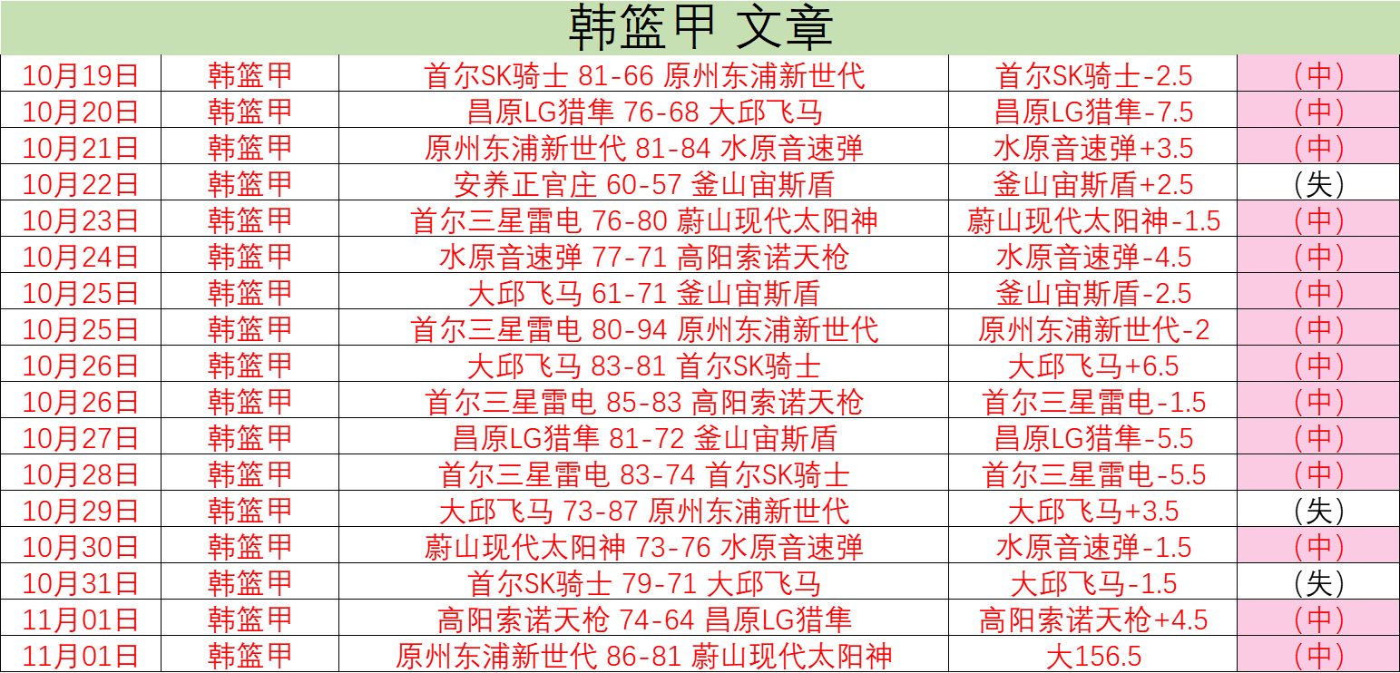 首尔SK骑士上赛季是41胜13负的成绩,进攻端是79.4,防守端73.9,主场是21胜6负,客场是20胜7负,季后赛是首尔SK骑士3-1水原音速弹,总决赛是,首尔SK骑士3-4昌原LG猎隼,首尔SK骑士无缘总冠军。新赛季近期成绩,2025-10-31首尔SK骑士79-71 [36-33]大邱飞马,昌原LG猎隼81-89 [42-33]首尔SK骑士,高阳索诺天呛68-79 [39-45]首尔SK骑士,首尔SK骑士80-70 [38-39]首尔三星雷电,首尔SK骑士58-62 [23-27]昌原LG猎隼,昌原LG猎隼51-54 [17-29]首尔SK骑士,一起看看一起分析。目前,常规赛,首尔SK骑士4胜6负,昌原LG猎隼7胜3负,