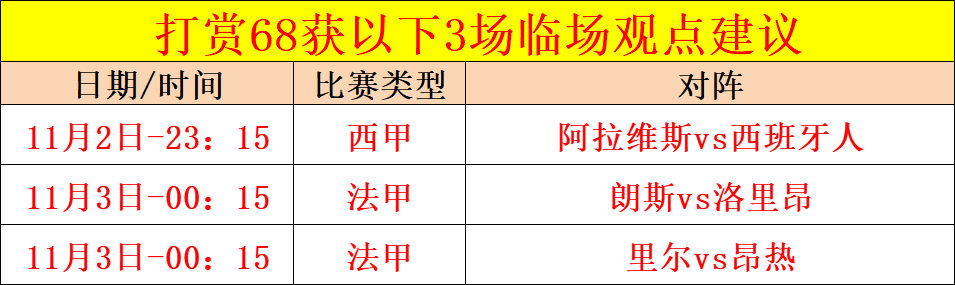 注:今日打赏68可获以下3场欧罗巴临场观点建议