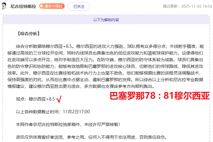 解锁内容包括:综合分析+比赛建议(数据观点+附加观点)