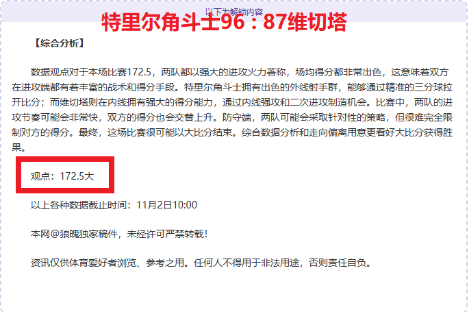 解锁内容包括:综合大数据分析+分解赛事走向+比赛建议+作者观点数据