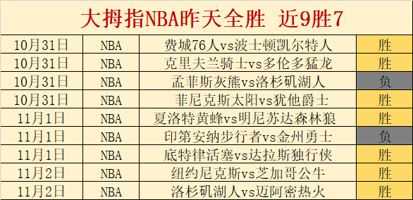 NBA昨天全胜,连胜3天。整体成绩大胜3天合计18胜13!