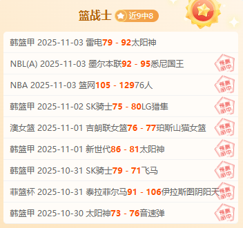 【赛事回顾】昨天NBL和NBA赛事继续取得胜利,作者本场乘风破浪继续前行,所有的战绩不是偶然的幸运所能达到,连胜的结果不是靠侥幸就能得到!让作者充分展现出对各大篮球联赛分析的专业知识及数据统计能力。本期作者利用大数据分析,演算出赛事有利方案!