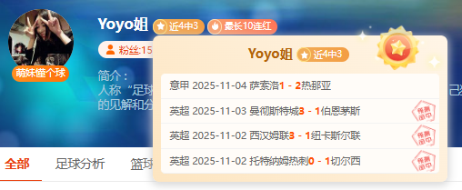 【上期回顾】:昨天公推意甲失利略显遗憾,而超级重点英超方案与胜利擦肩而过,近15胜11状态不错呀!——今天核心赛事已确认,信心依旧,各位可点击一下【赞赏】按钮给予鼓励,轻松在“站内信”获取当天新鲜信心专场哦!多一份参考离喜悦再近一步,Yoyo将继续率粉粉们继续前行~