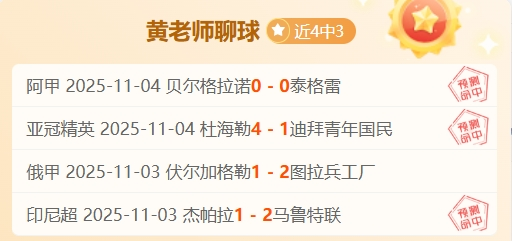 赛事回顾:昨日4胜3,重中之重系列阿甲命中了!亚冠精英拿下杜海勒!印尼超也命中马鲁特联比分,今日我们继续精挑细选,以稳为主,期待能够有一个好的收获!今天还有一场很不错的沙地甲!