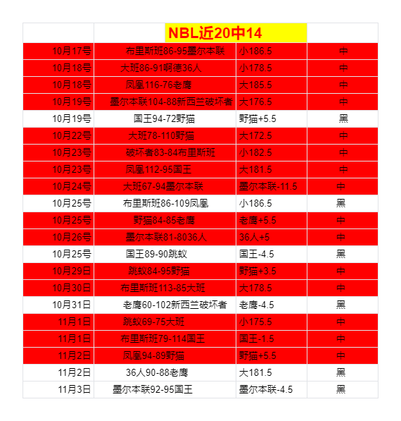 NBL近20中14。今天认真分析好,争拿下。低调前行做好赛前前瞻走的是长期稳定路线 才是最牛的.