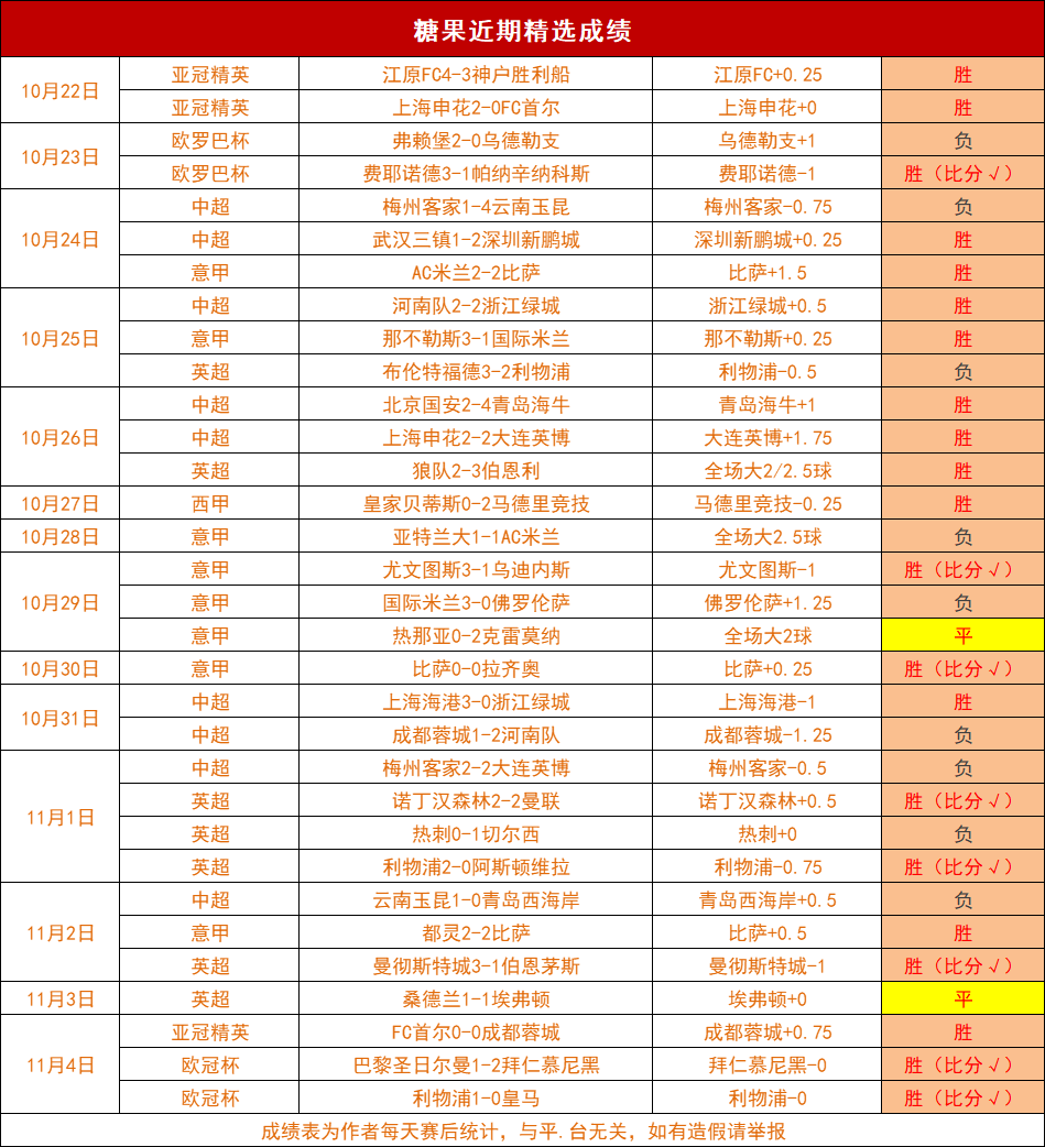 最近更新:2025-11-05 10:41 欧冠杯近4胜率75%近4中3