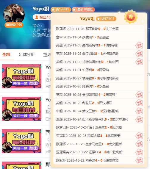 【上期回顾】:昨天公推欧冠那不勒斯失利很可惜,而近期超级重点方案表现不俗,近15胜11状态出色呀!——今天核心赛事已确认,信心依旧,各位可点击一下【赞赏】按钮给予鼓励,轻松在“站内信”获取当天新鲜信心专场哦!多一份参考离喜悦再近一步,Yoyo将继续率粉粉们继续前行~
