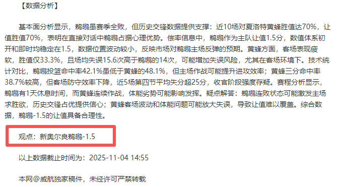 纽约尼克斯作为东部第六的球队,整体表现呈现明显的主客场反差。赛季至今7场比赛,总战绩4胜3负,胜值57.1%,但主场4胜0负保持全胜,胜值100%,场均得分117.8分,失分106.0分,展现强势主场统治力;客场却0胜3负,胜值0%,场均得分114.3分,失分123.7分,暴露出严重的客场疲软问题。近期状态方面,球队取得2连胜,近10场6胜4负,胜值60%,但技术统计揭示隐患:投篮命中率43.5%和三分命中率36.5%处于中游水平,场均失误13次略高于联盟均值,且半场胜值71.4%虽高,但客场半场胜值仅33.3%。疑点聚焦于主场依赖性:尼克斯主场4连胜能否延续?客场连败是否反映战术适应性不足?历史交锋中,近10场对阵森林狼胜值50%,让值胜值60%,但总得分大率60%,暗示进攻端波动。近期对手包括华盛顿奇才和芝加哥公牛,胜出但分差不大,是否因对手实力偏弱?团队协作在主场高效,但客场失误频发,防守端场均失分123.7分,能否在强强对抗中维持稳定性?此外,半场得分61.7分优于对手,但全场净胜分仅2.7分,疑点在于后程乏力是否成为隐患。