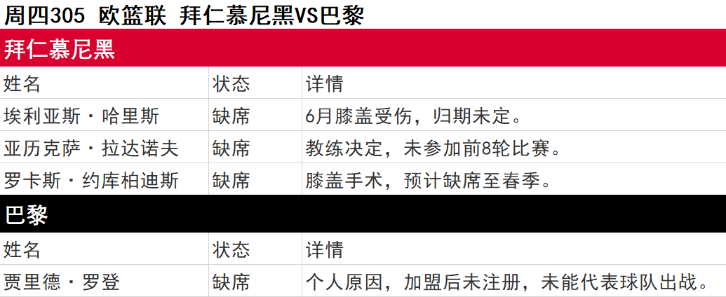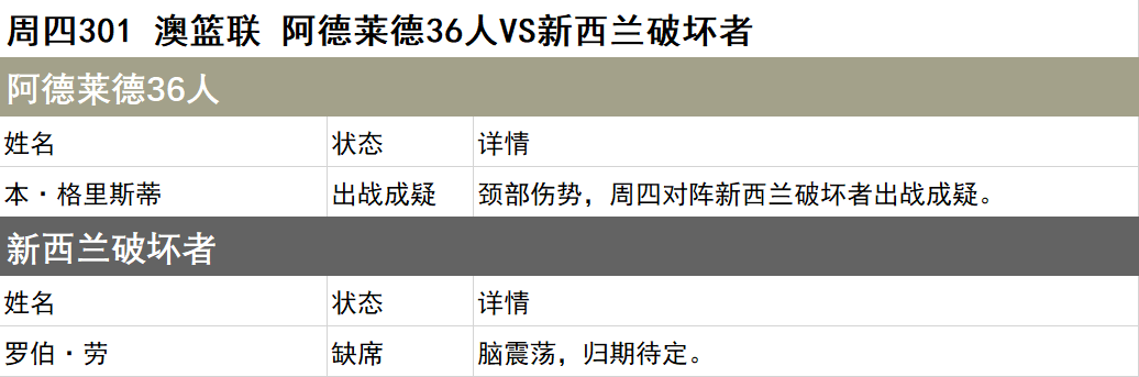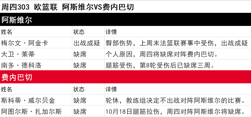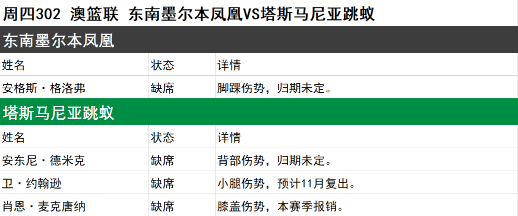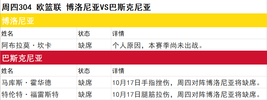 以上伤停名单由官方渠道实时更新,时间:11月6日10:00