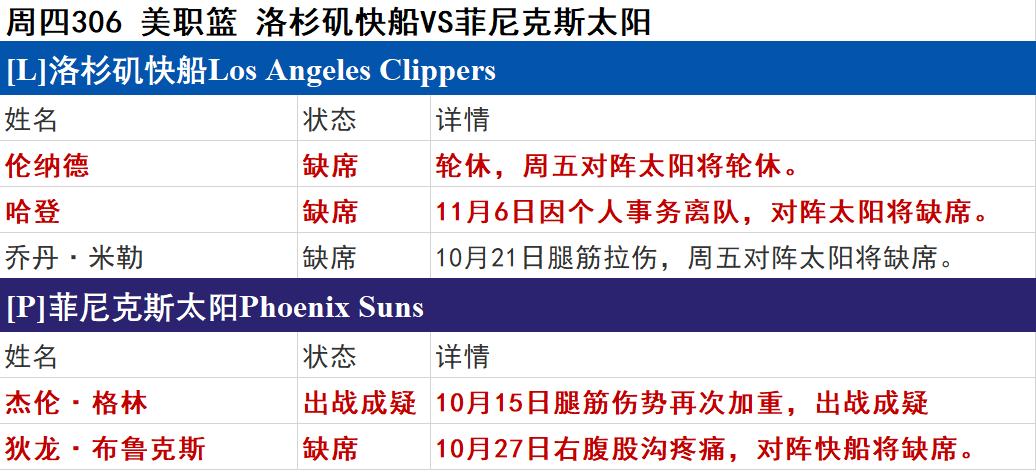 快船小卡&哈登双双缺阵,太阳主场迎敌