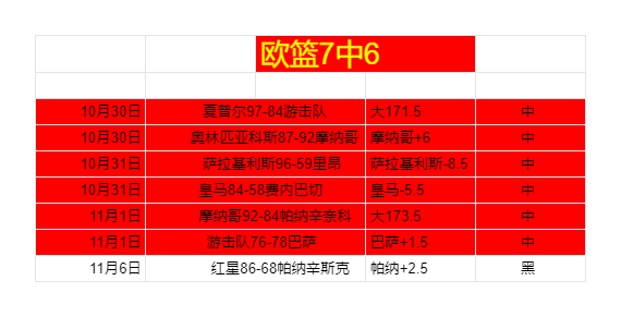 欧篮一直稳定,昨天有点可惜没拿下,今天精选两场争取拿下。低调前行做好赛前前瞻走的是长期稳定路线 才是最牛的.