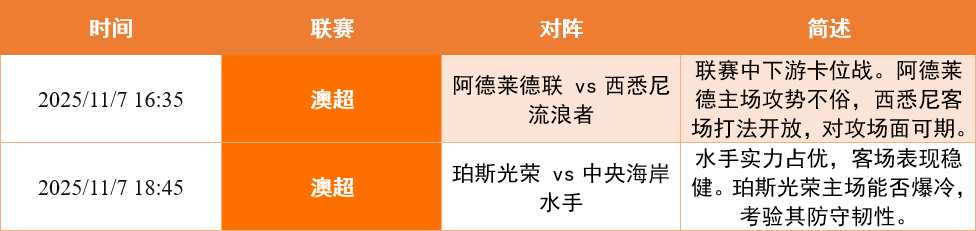 核心看点:阿德莱德联攻击力不俗但防守存在隐患,本赛季3场联赛均有进球也均有失球。西悉尼流浪者则呈现相反态势,进攻效率低下(3轮仅打入2球)但防守相对坚韧。