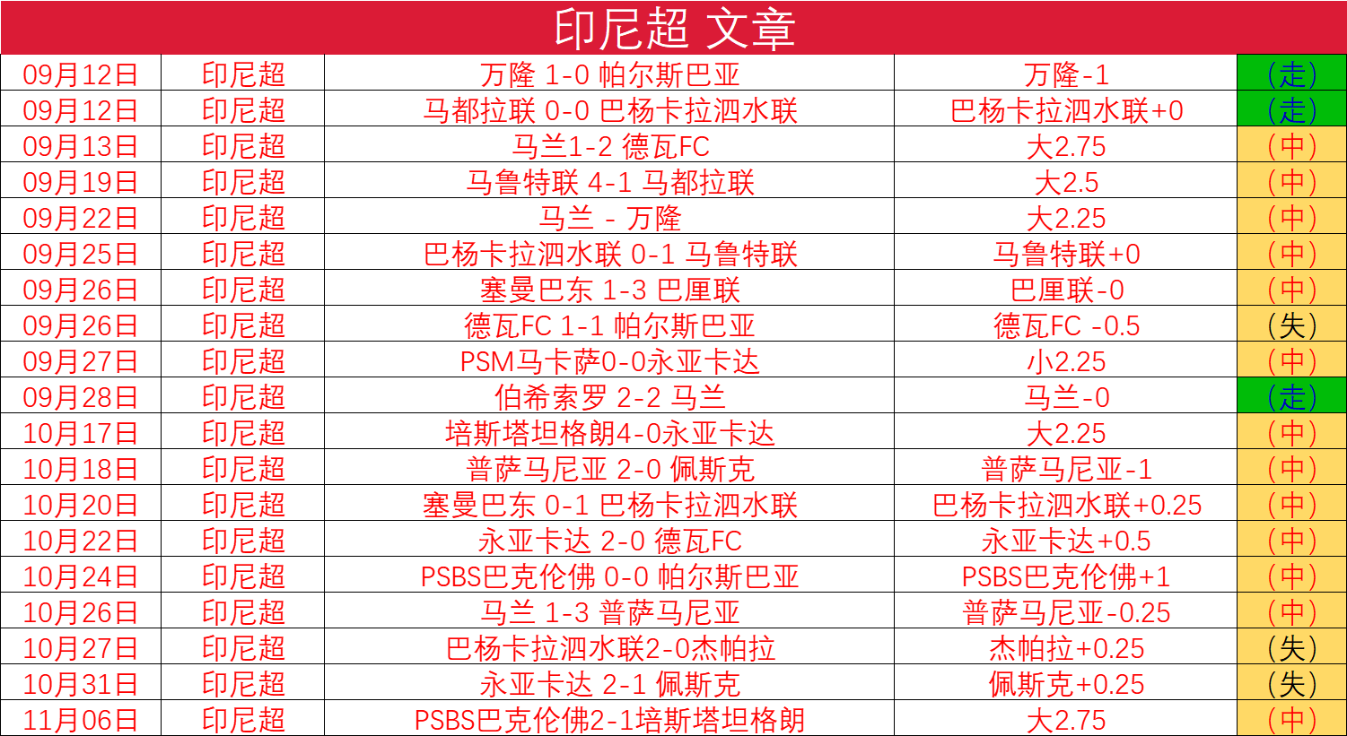 上一场,25-11-01巴厘联0-1(0-0)万隆,巴厘联主场遗憾落败的表现不佳。整体来看,球队的一些战术,防守体系相对稳固,球员在防守中表现较为稳定,习惯高位逼抢,限制对方并且在争顶高空球时也有一定的优势,通过中场的拦截和后卫的协防降低对手进攻效率打反击取得进球。球员在把握机会的能力上也有优势,近期10场比赛是取得3胜4平3负的成绩,本场比赛一起期待看看如何表现发挥的。
