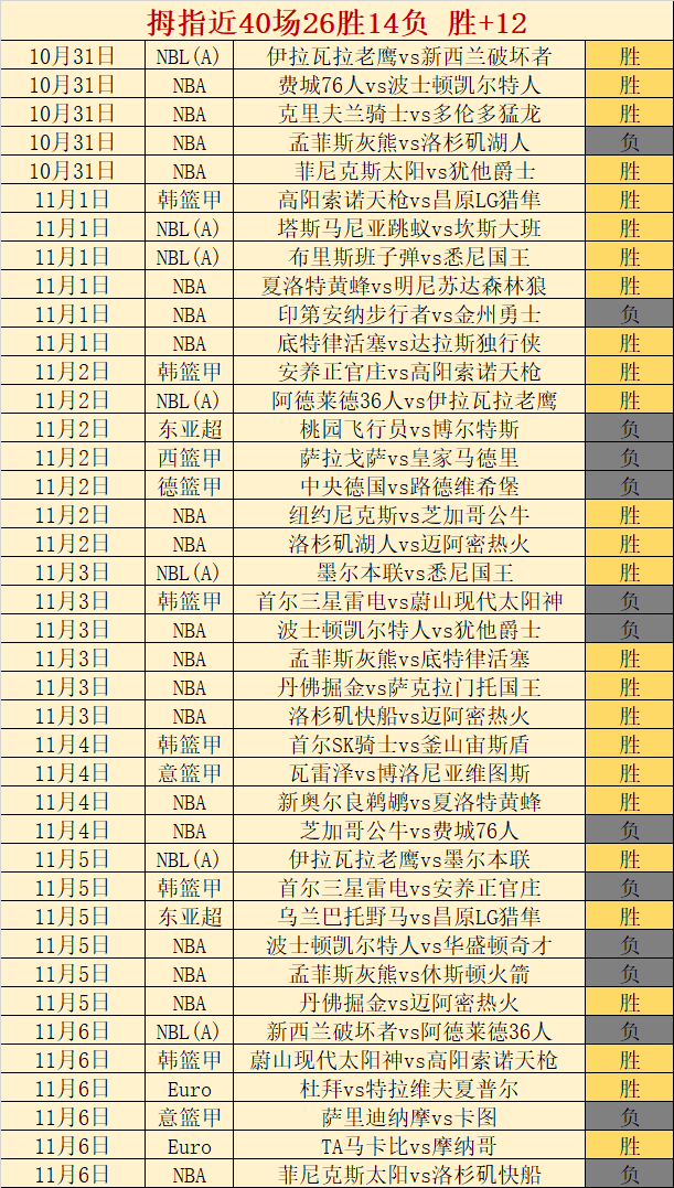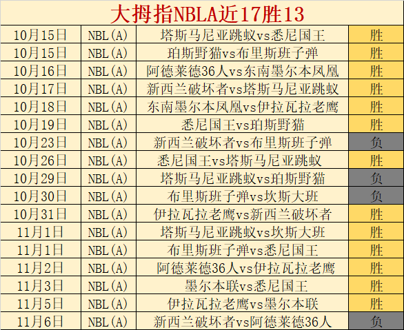 NBLA17胜13,非常精彩的NBLA赛事。近7天40场分析26胜14负 胜+12,当前状态值得肯定的!
