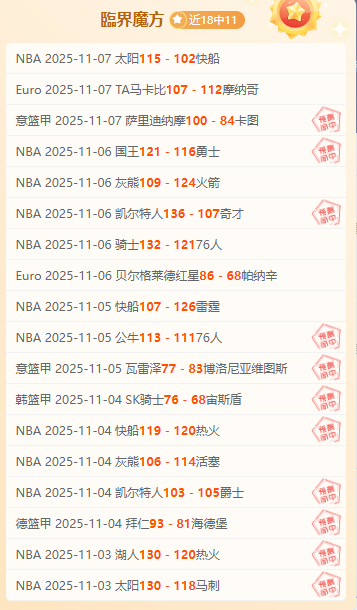【成绩回顾】近期整体成绩18胜11,状态相对稳定。今日针对Euro以及NBA赛事进行临界值数据深研。