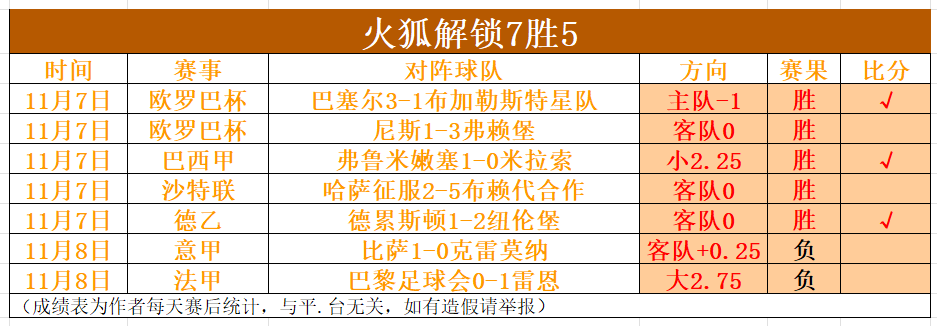 【小女子状态回顾】昨天火狐解锁送出的沙特联和德乙顺利打出!只是意甲及法甲预测结果出现偏差,解锁7胜5,并连中3场比分!今天别忘了继续关注火狐的动态哦!