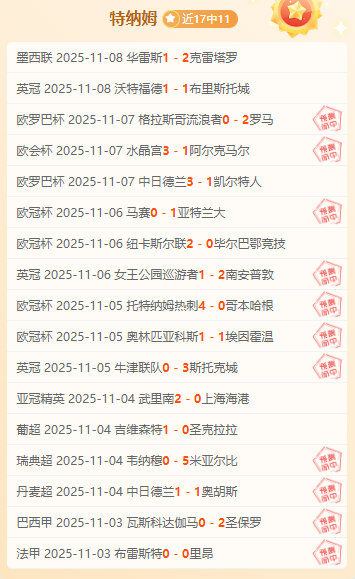 【战绩回顾】目前成绩近11胜7。特纳姆将凭借多年深耕足球领域的专业视角,结合独家赛事分析方法,深度解析赛果走向。诚邀各位球迷朋友共同交流探讨,让我们携手冲击高效战绩!