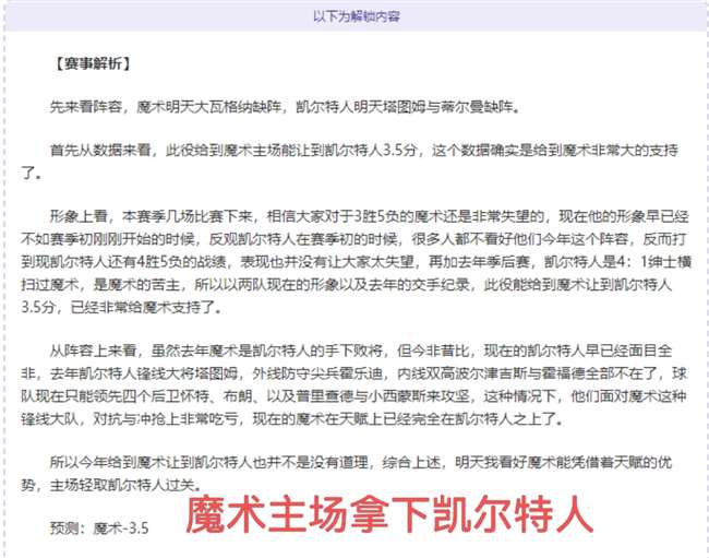 以下为解锁内容:含赛事解析+数据分析+观点参考