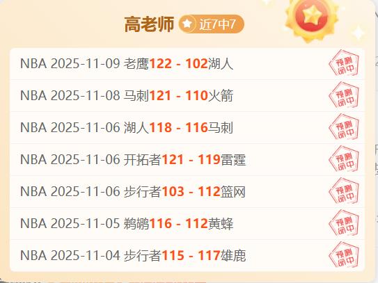 【赛事回顾】上期分享的NBA赛事老鹰对阵湖人,结果老鹰方向成功打出。高老师豪取7连胜,近期状态火热。