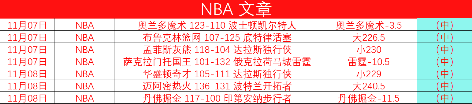 NBA豪华7连胜,非常棒。信心高的场次还是比较有把握的,每天也没必要写太多场了,提高正确率,更重要。