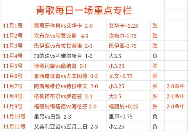 青歌深耕于国内外次级联赛,在某个时间段寻出最值得入手的比赛,长期都保持着不错的收益,昨日发挥不佳净负2场,重点巴拉甲遗憾未能拿下,目前重点场次11中8(72%),正视自己的不足才能更好的调整选择比赛时的能力,今日将更加谨慎以及多方位的考察选择高质量赛事有信心强势反弹!