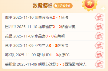 昨日3战保持不败,斩获6连胜。祝大家生活如足球赛场般精彩,好运相伴,胜利连连!数据揭秘保持长胜心态,看到的朋友不要再犹豫了。