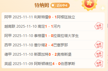 【战绩回顾】目前成绩近6胜4状态稳定。特纳姆将凭借多年深耕足球领域的专业视角,结合独家赛事分析方法,深度解析赛果走向。诚邀各位球迷朋友共同交流探讨,让我们携手冲击高效战绩!