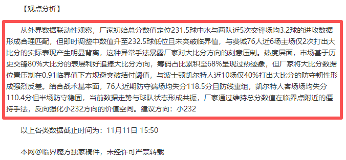【成绩回顾】昨天拿下两场赛事的胜利,今日针对Euro赛事以及NBA赛事进行临界值数据深研。