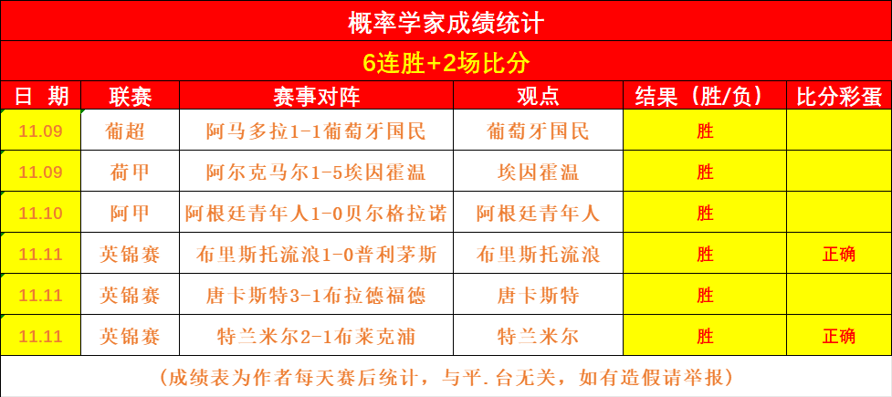 战绩回顾:6连胜+2场比分,状态相当理想。大家可以点点关注,建议不要单单挑选某一场比赛,某一篇文章,要留意概率送出的每一场比赛,这样就可以更好地与概率同步,可以长期取得正向的收获。
