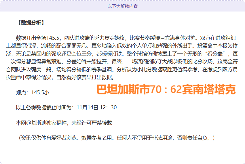 【成绩回顾】昨获3战胜,单日午场5胜3,精选比赛拆解本期再创连胜新高度,篮球方向连胜呈现非同凡响,拆解精准比赛继续收获连胜,篮球板块拆解数据勇往直前,资深篮球爱好者,用独立方式拆解赛事再为大家奉上。以下再为大家分享一场精彩赛事,敬请期待!