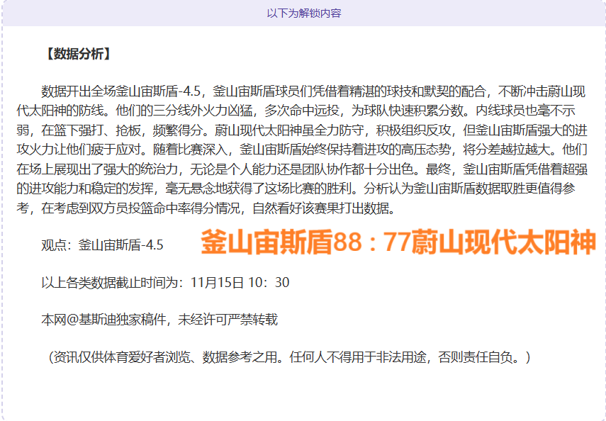 【成绩回顾】昨获3战胜,近8胜5,韩篮甲二胜+NBL再获得胜利,精选比赛拆解本期再创连胜新高度,篮球方向连胜呈现非同凡响,拆解精准比赛继续收获连胜,篮球板块拆解数据勇往直前,资深篮球爱好者,用独立方式拆解赛事再为大家奉上。以下再为大家分享一场精彩赛事,敬请期待!