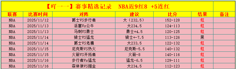 NBA回顾:近期NBA赛场状态突出,连续2天保持全胜!今日再红2场,连续5场命中,近9场命中8场,经过开季初的磨合后,NBA各支球队基本稳定下来,这个时候最容易把握,今日继续分享2场NBA赛事!