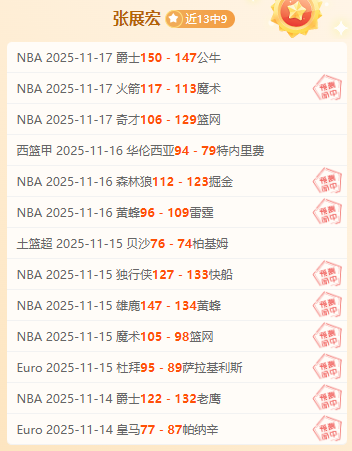 昨日稍有下滑,整体相对稳定,目前取得13胜9的成绩。张展宏继续深挖数据,不吹不擂真实成绩有目共睹。继续为大家送上高质量和专业的赛事理解,敬请大家关注!
