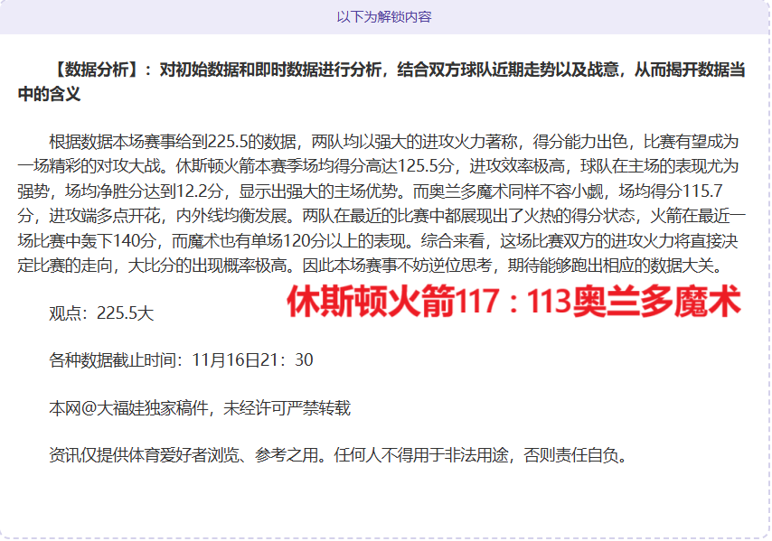 【基本面分析】:包括双方球队状态、阵中情况的多项数据分析
