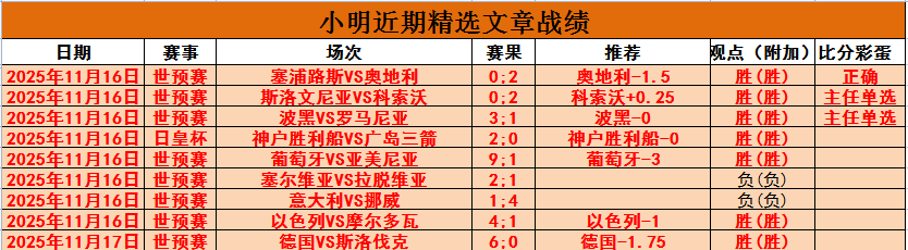 【上期回顾】拿下全胜,状态超神!昨整体2场全胜,精选1胜1,德国收全,精选近9胜7;赞赏1胜1,北爱尔兰打出,赞赏近3胜2。昨精选+赞赏又全胜,比赛少也能双线大丰收!今继续加油
