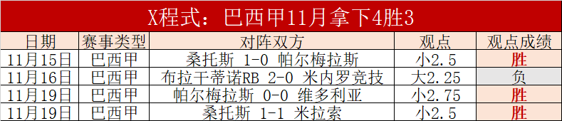 巴西甲11月取得4胜3,美洲赛事精彩。昨天平稳发挥,近37天胜23天+10,胜+数值值得证明实力值得认可!