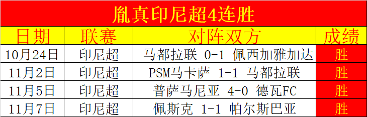 印尼超4连胜,印尼超发挥出色。近4天胜3天,合计胜+6,20天胜15天胜+20,傲视群雄的胜+表现