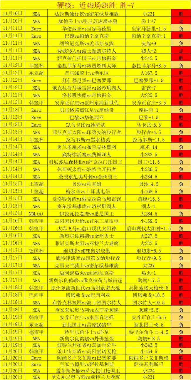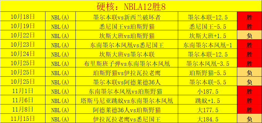 NBLA12胜8,发挥出色值得肯定。昨天胜利发挥,近49场胜28场,胜+7,胜+效果非常优质!
