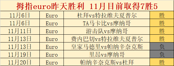 euro昨天胜利,11月的euro合计7胜5,euro的精彩度同样十分高。昨天拿下胜利,连续两天胜利,目前标识近7胜5,状态值得认可的!