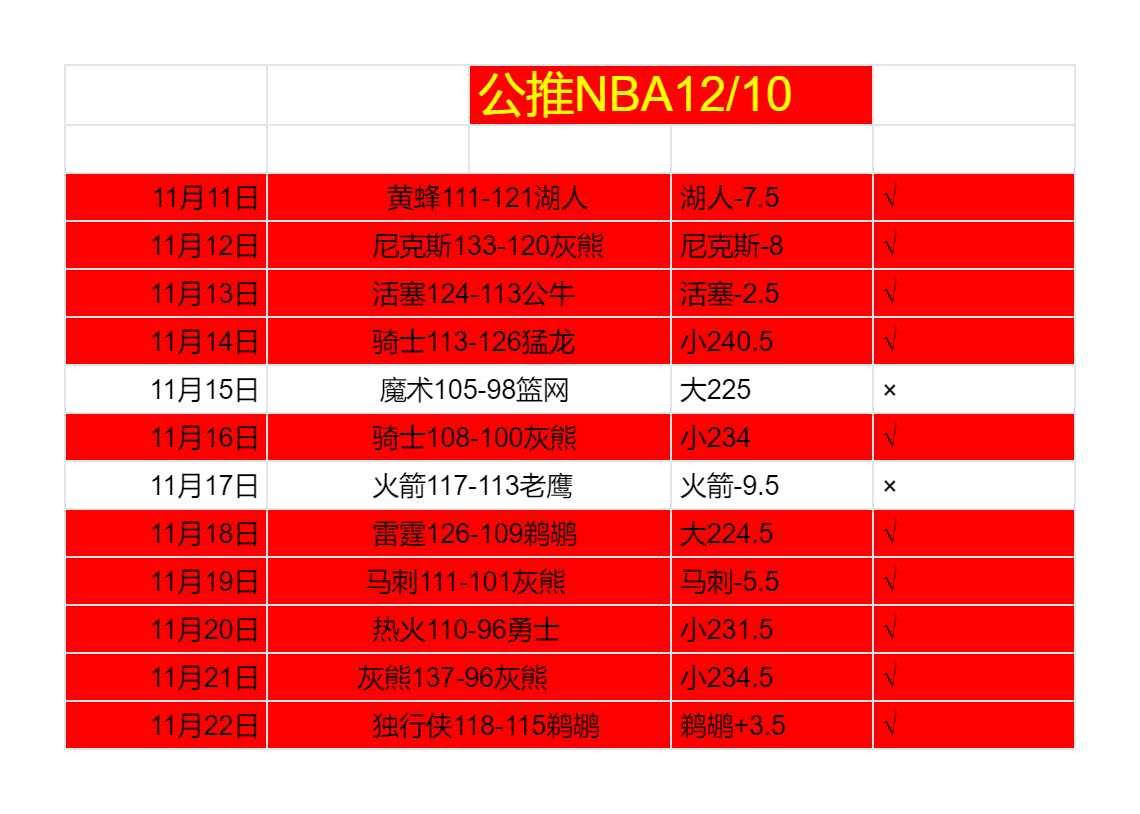 稳定NBA,每天一公推继续拿下近12中10,昨天总3中2,骑士这场最后时刻没有守住,可惜了,走的长期稳定路线