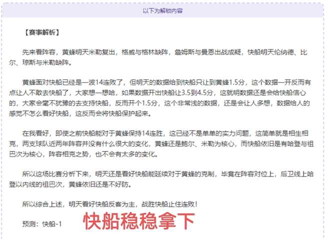 以下为解锁内容:含赛事解析+数据分析+观点参考