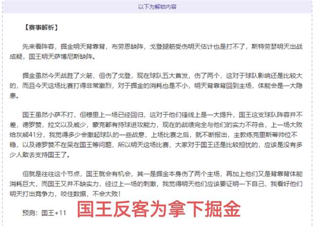 以下为解锁内容:含赛事解析+数据分析+观点参考