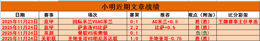 【上期回顾】状态稳定,继续加油!昨文章3胜2,美职、意甲打出,近6胜4;赞赏近8对6。昨天精选只有2场持平,还能接受。今争取打出正向上分,加油!