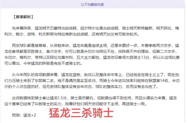 以下为解锁内容:含赛事解析+数据分析+观点参考