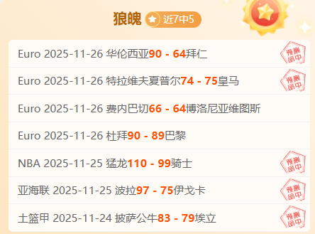 【成绩回顾】近7胜5,近获得二连胜,深夜赛事连胜势头给力!新一期赛事继续关注赛事延续胜利,作为本网资深作者和篮球分析师实力有目共睹,擅长拆解数据用意,连胜佳绩历历在目,笔者将再接再厉争取得更佳战绩回馈粉丝,本场比赛将精选一场优质情报,敬请关注。