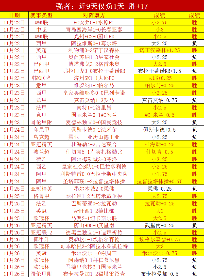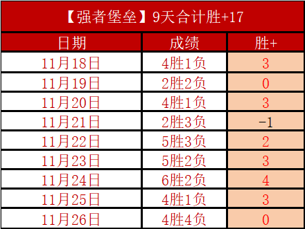 昨天平稳发挥,连续5天保持精彩胜+12,近9天近负值1天累计胜+17,非常夸张的胜+表现。十月月成绩胜+16,双位胜+十分吸引眼球